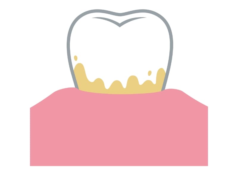 磨き残した歯垢(プラーク)自体が淡い黄色をしているため、蓄積すると歯が黄ばんで見えます。さらに歯垢が石灰化して「歯石」になると、多孔質な表面が色素を取り込みやすく、より濃い黄ばみへとつながります。