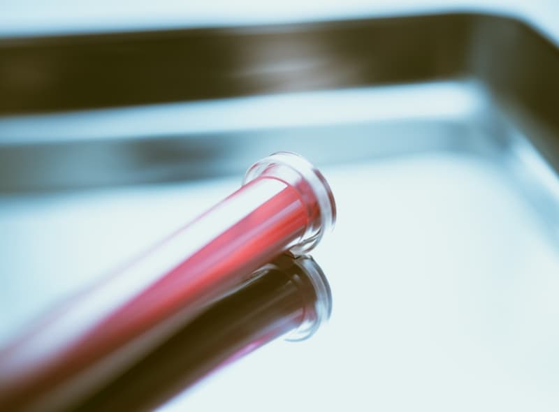 手術当日、処置を始める前に採血を行います。必要な量は通常の血液検査と同程度の10cc〜20ccほどです。採取した血液をすぐに院内の遠心分離機にかけ、10分ほどで成長因子が濃縮されたゲル状の「PRF」を生成します。